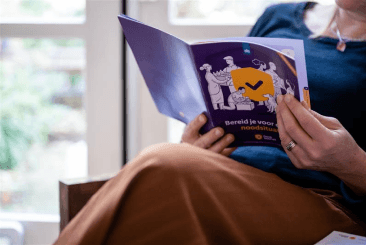 Na zelf te hebben ervaren hoe plots een noodsituatie kan ontstaan, volgt een boekje met duidelijke informatie over hoe je voor te bereiden. Ook in de campagnefilms laten we steeds zien hoe een concrete actie om je voor te bereiden écht helpt in een noodsituatie.
